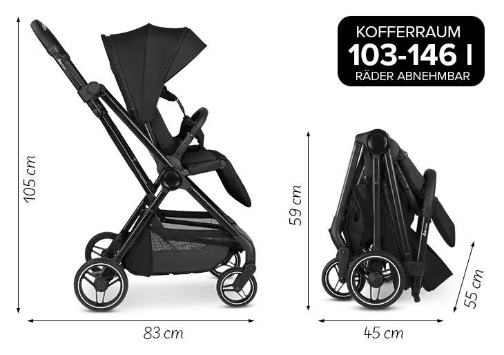 Faltmaß: 45,0 x 55,0 x 59,0 cm (LxBxH)