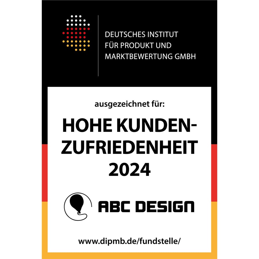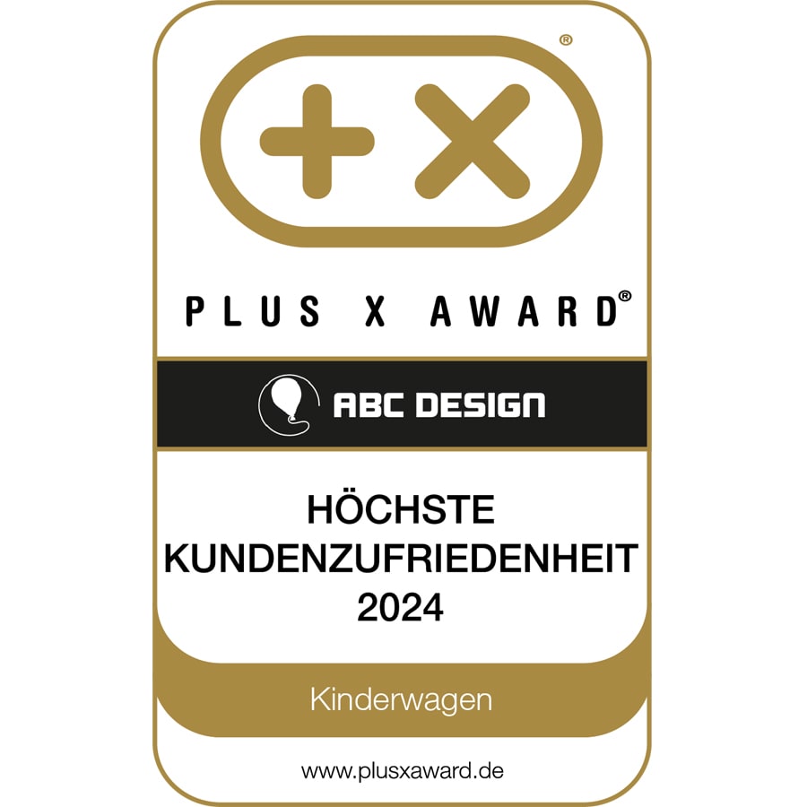 ABC Design wurde mit beiden Auszeichnungen prämiert und zählt in 2024 zu den Marken mit der höchsten Kundenzufriedenheit, ausgezeichnet von PLUS X Award in der Kategorie Kinderwagen und vom Deutschen Institut für Produkt und Marktbewertung.