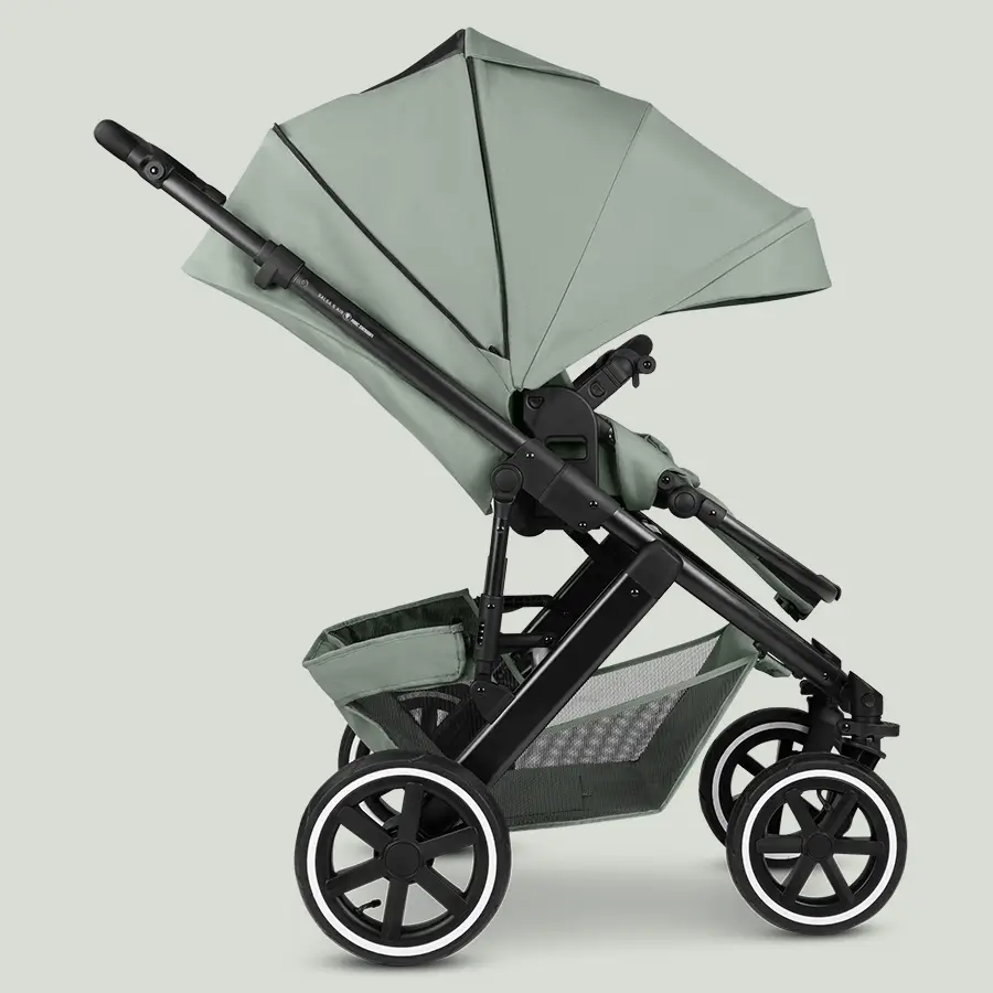 Auch das schützende Sonnenverdeck aller Nachfolgermodelle hat ein Upgrade erhalten, das für herausragenden Sonnenschutz sorgt. Das UV-Schutz 50+ Verdeck lässt sich zu einem großen Sonnendach mit Lüftungsfenster erweitern. Ein nach vorn ausklappbares Faltdach verlängert neu z.B. bei tiefstehender Sonne das schützende Verdeck zusätzlich. Zuverlässiger Sonnenschutz, noch mehr Schattenfläche für Dein Kind und eine angenehme Luftzirkulation in den Sommermonaten.