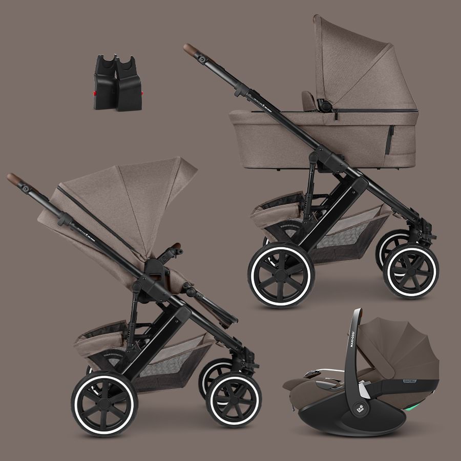 Aktuell hast Du bei der Wahl des Sets zwei ABC Design Kinderwagen-Modelle für die Du Dich entscheiden kannst: Salsa 5 Air und Samba 2. Die 3in1 Sets bieten Dir jeweils Babywanne und Sportsitz des gewählten Kinderwagenmodells, die entsprechenden Adapter und die Maxi-Cosi Babyschale Pebble 360 Pro². Kinderwagen und Babyschale haben im Set mit dem Design „nature“ den gleichen Look und das exklusiv nur in der aktuellen Kooperation. Mit welchen Komfort- und Sicherheitsfeatures die Sets außerdem punkten und welches Set besser zu Dir, Deinen Bedürfnissen und Deinem Familienalltag passt, erfährst Du direkt über die im Folgenden verlinkten Detailseiten.
