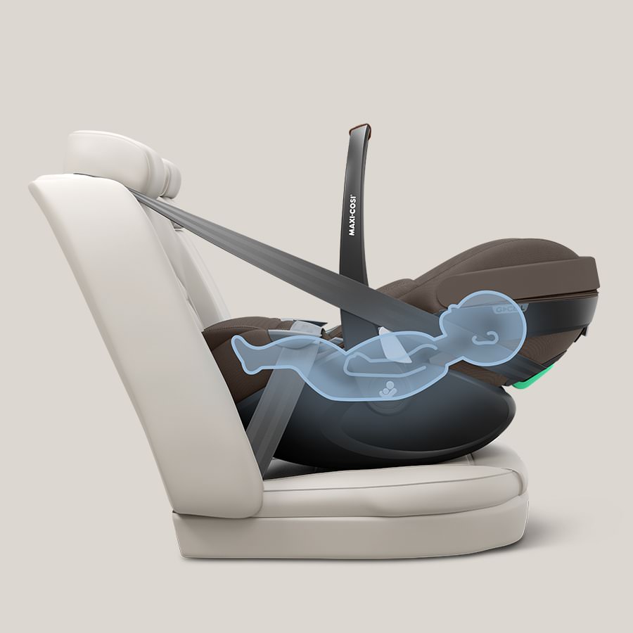 - Babyschale mit flacher Liegeposition im Auto & bei Befestigung auf dem Kinderwagen