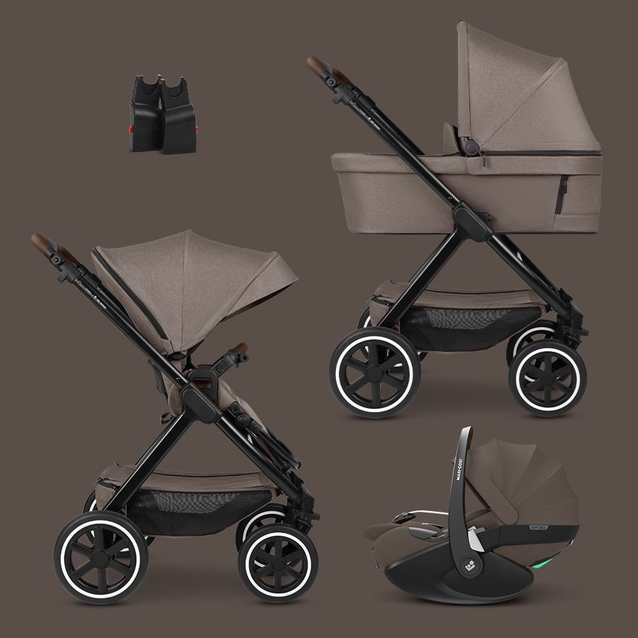 - Kombikinderwagen mit pannenfreien Luftkammerrädern, Maxi-Cosi Babyschale & Adapter