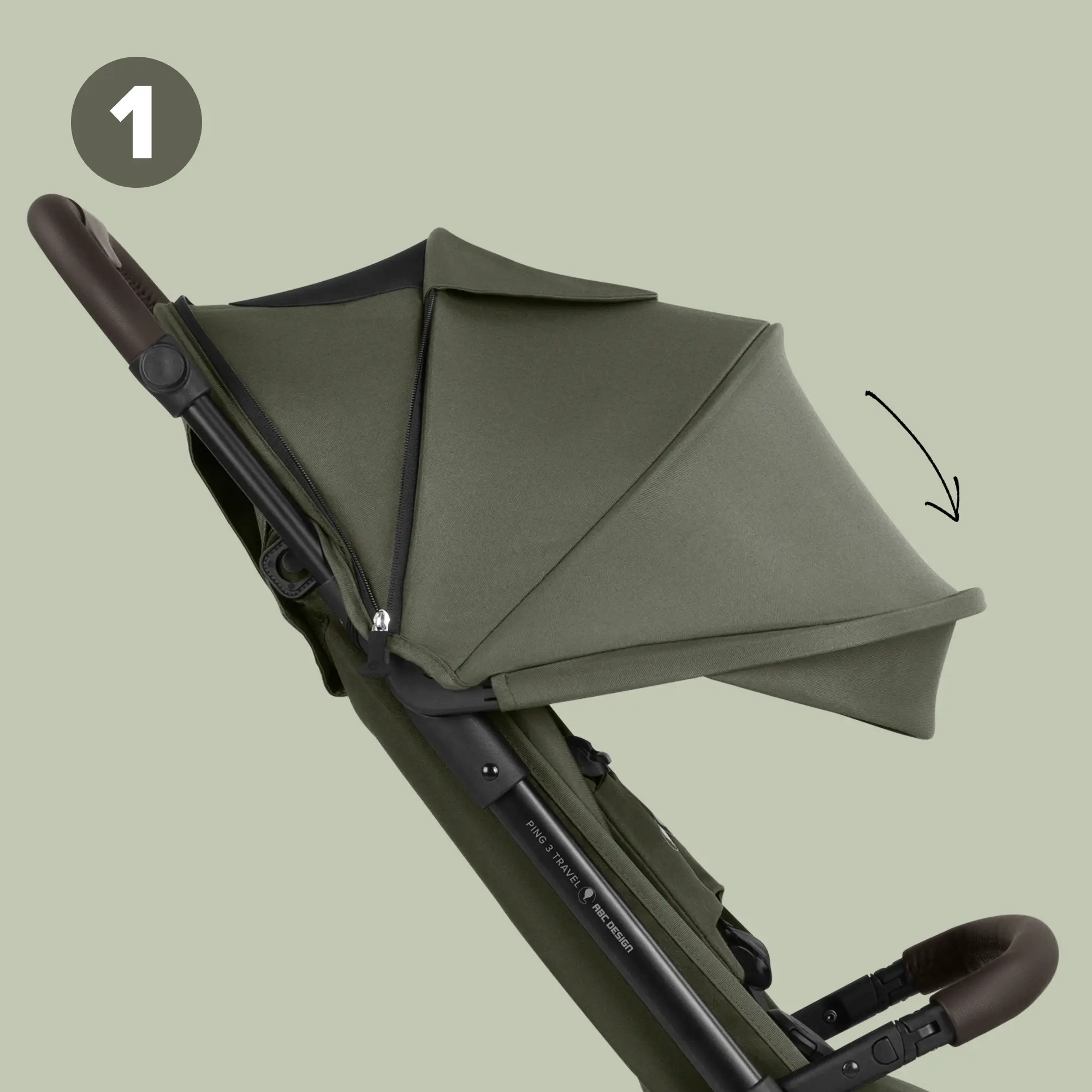 Der Ping 3 Travel ist mit einem verlängerten Sonnenverdeck ausgestattet. Du kannst das Verdeck nicht nur ausklappen, sondern hast ganz vorne eine zusätzliche Sonnenblende. Diese kannst Du je nach Sonnenstand ein- oder ausklappen. Gerade bei tiefstehender Sonne bietet dies einen erheblichen Mehrwert für Dich und Dein Kind.