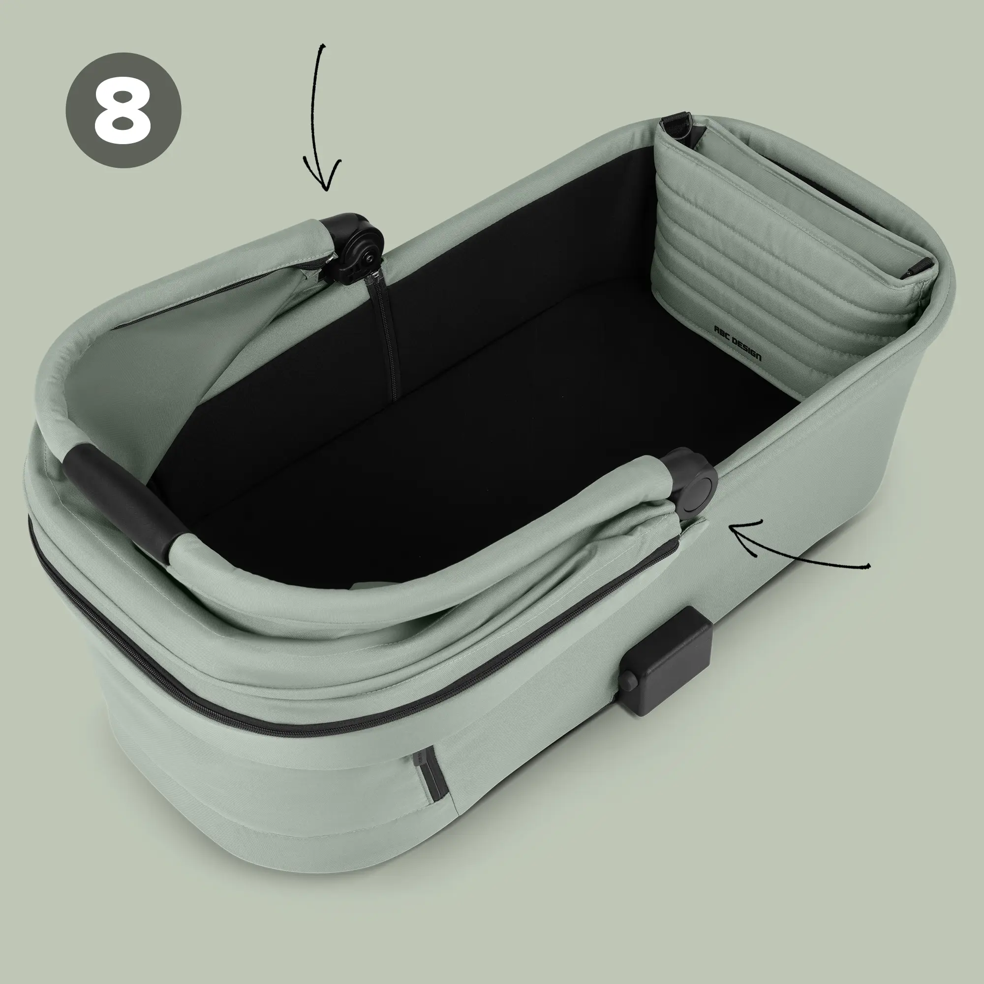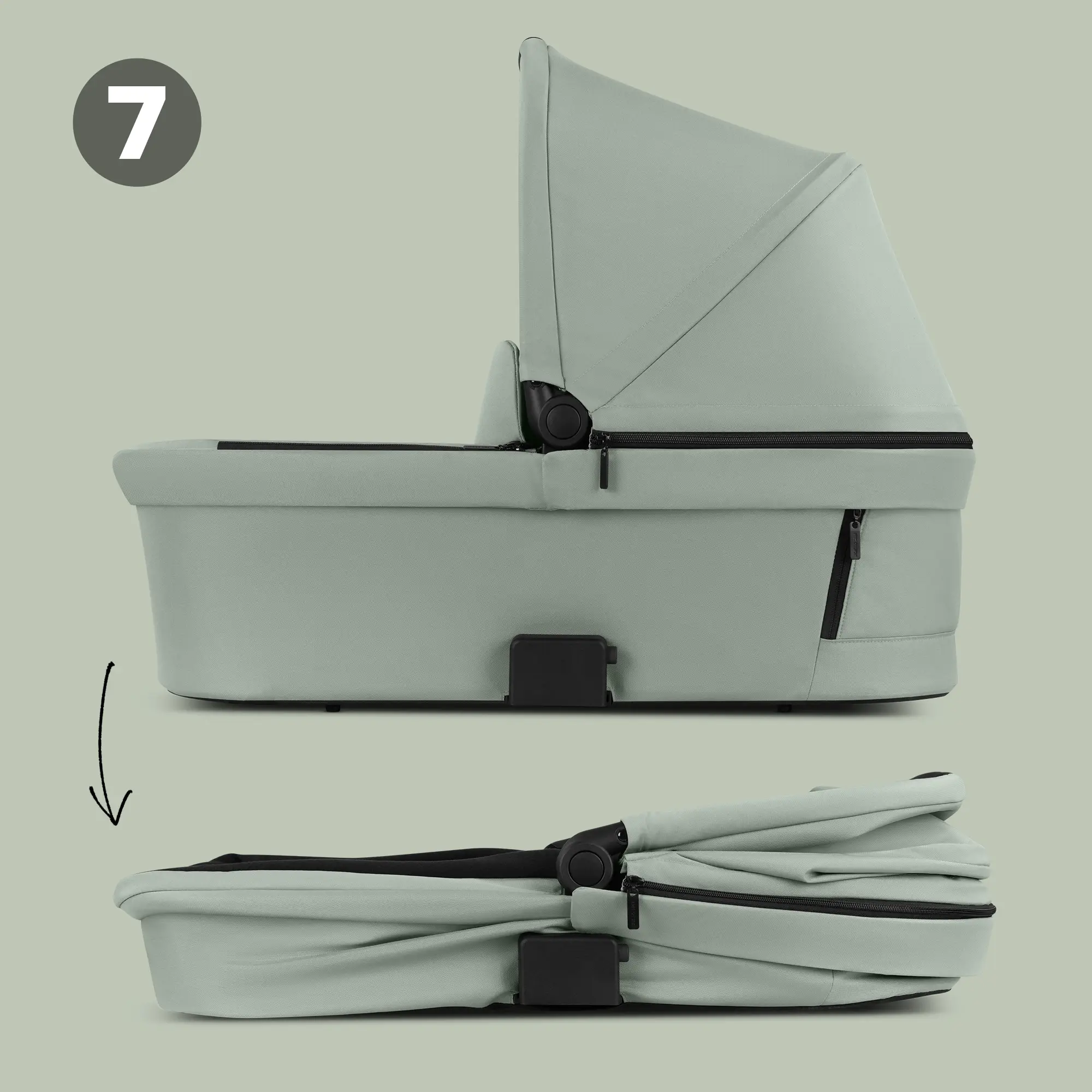 Unsere neue Babywanne kannst Du jetzt noch einfacher zusammenklappen. An der Unterseite findest Du zwei Hebel, über die Du die Wanne einfach entriegeln und anschließend zusammendrücken kannst. Dank der überarbeiteten Verbindungsteile an der Seite ist die Wanne nun auch deutlich flacher. Beim der alten Babywanne musstest Du zum Falten innen die Matratze herausnehmen und die beiden Metallbügel entriegeln. Dies ist jetzt nicht mehr notwendig und wesentlich komfortabler. Die Babywanne ist im Lieferumfang des Samba 2 nicht enthalten und als Zubehör erhältlich.